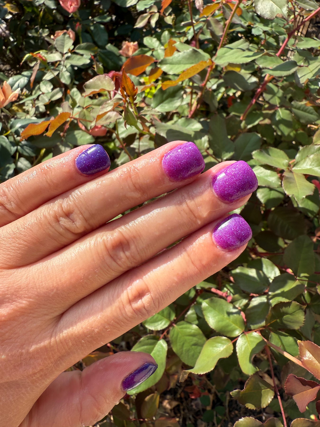 These pictures were taken in natural light. When applied, the color may appear slightly different in person due to different lighting, layers applied, use of a Matte Top Coat, and more...Check out our Official Peppi Gel Facebook Page & Peppi Gel's Facebook Group for more pictures.