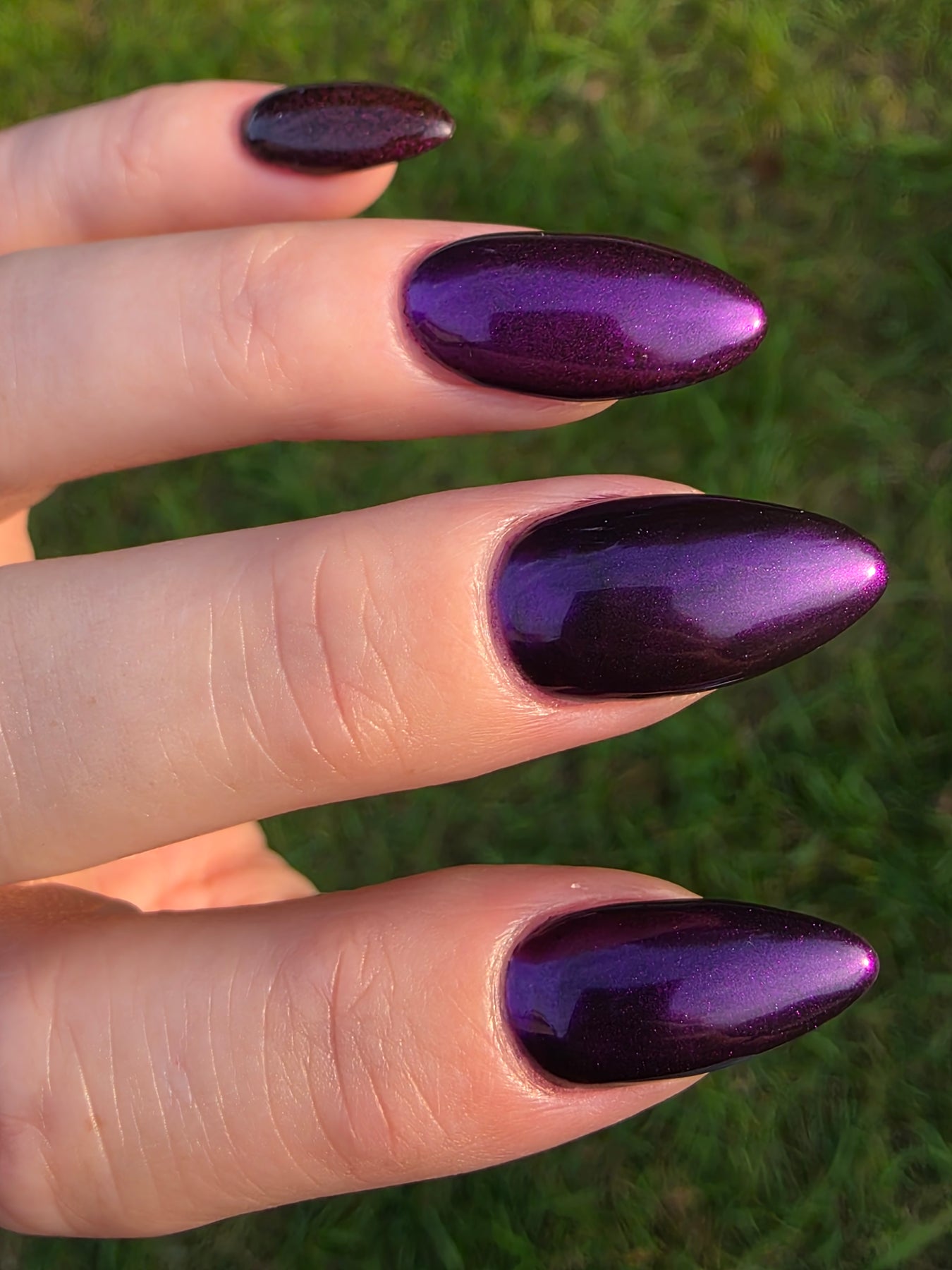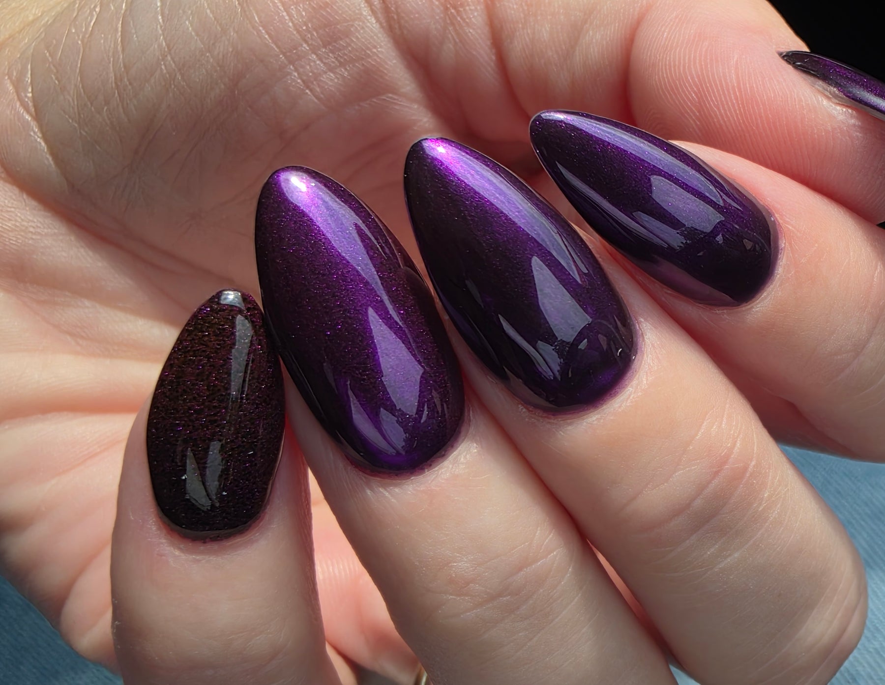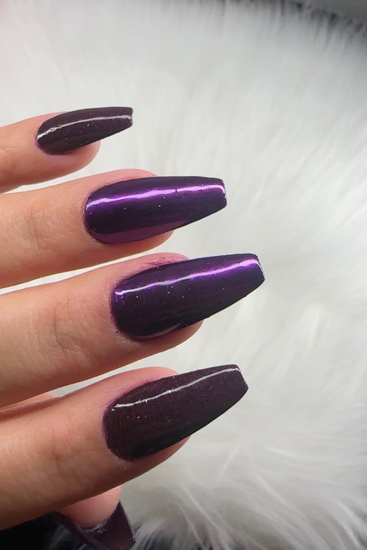 The ultimate fine black & Purple glitter with a wicked twist! This bold beauty is a 2-in-1 stunner—wear it as-is for a sparkling dark glam look, or chrome it to reveal a rich, royal purple.
