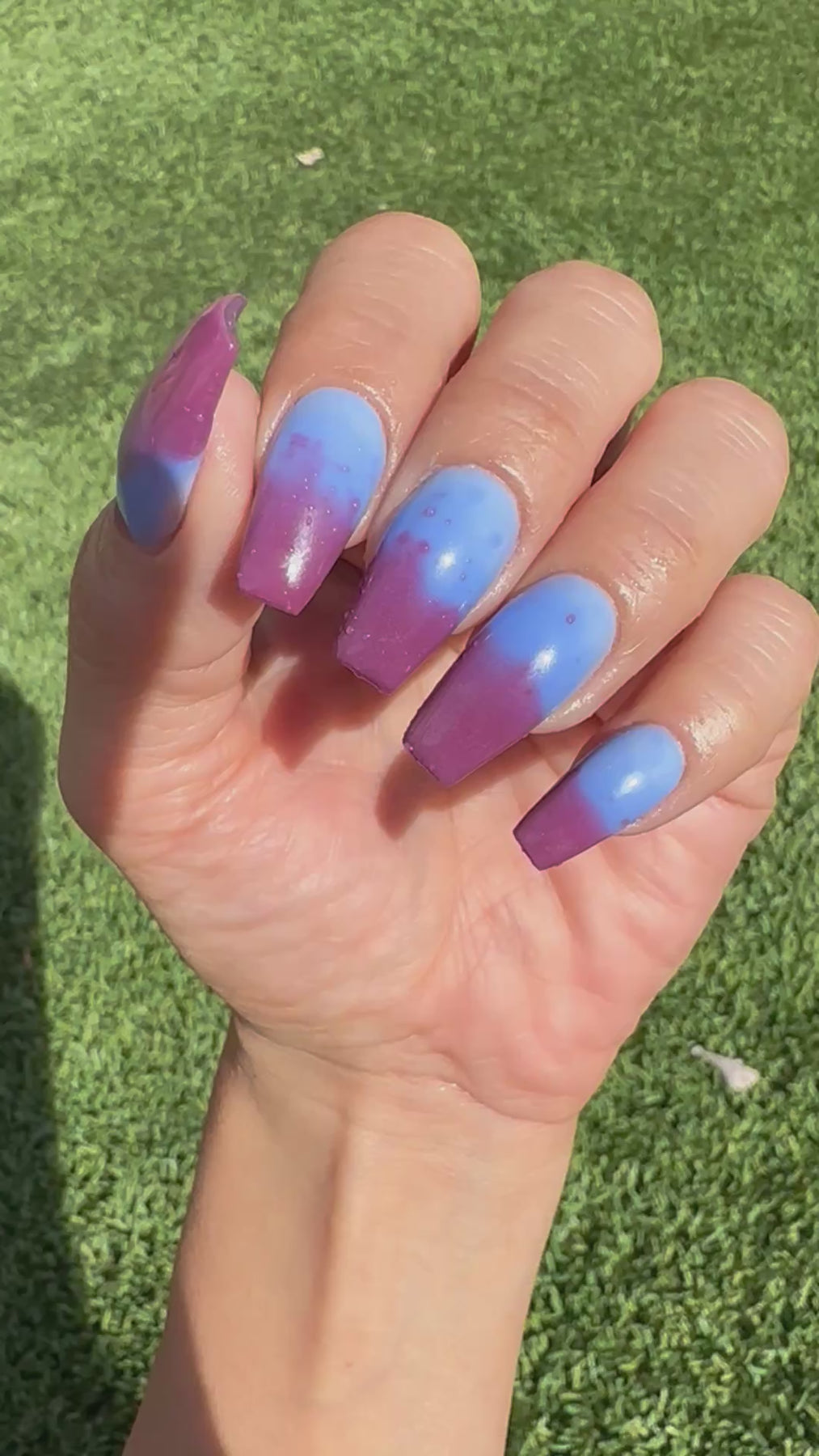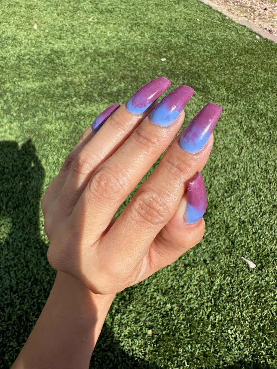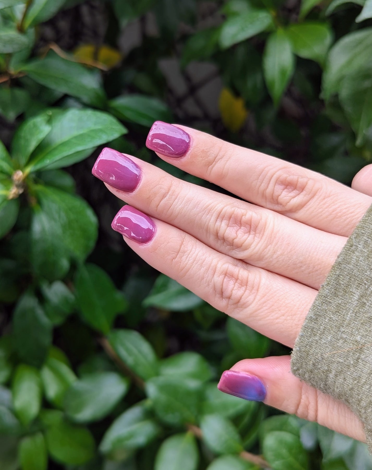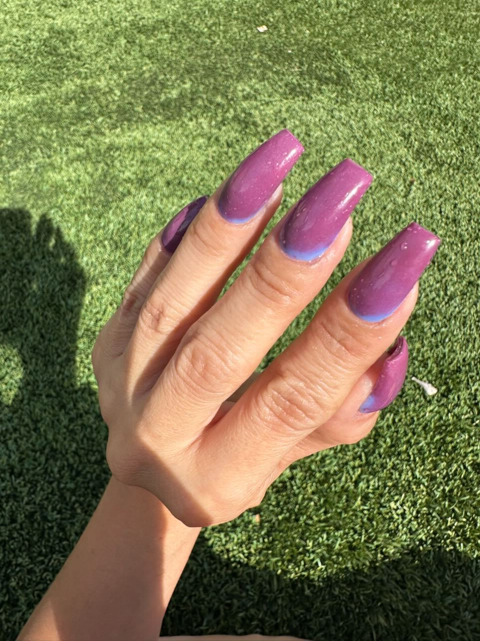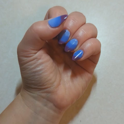 An icy, mesmerizing temperature changer that shifts from a deep midnight blue to a soft, cool light blue, finishing in a pinky maroon glow. It’s bold, moody, and totally addictive — the perfect shade for anyone who loves a little color-changing magic. ❄️