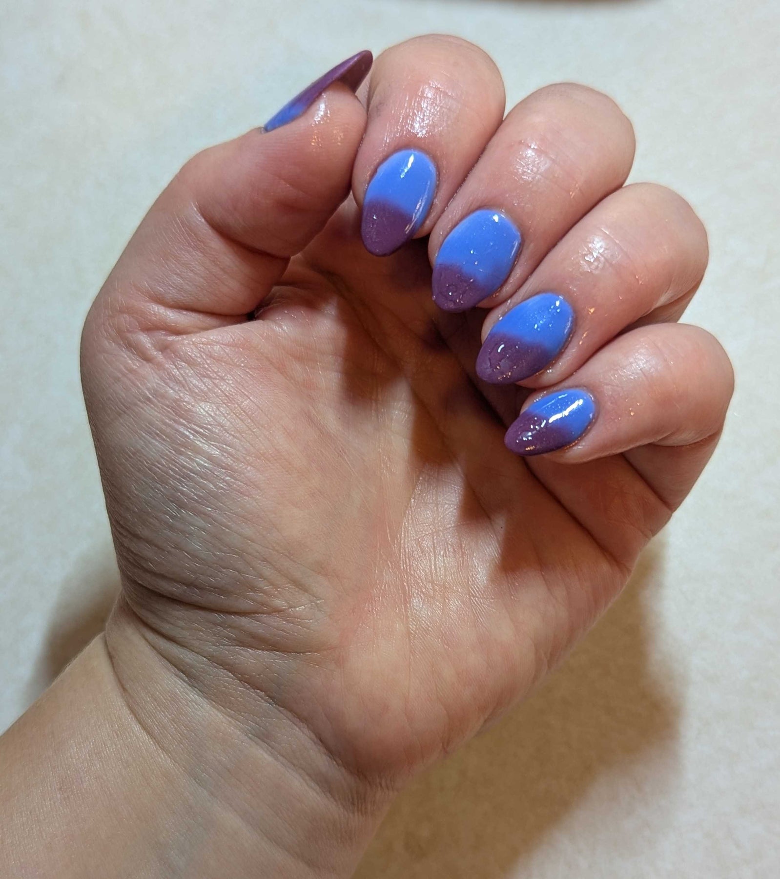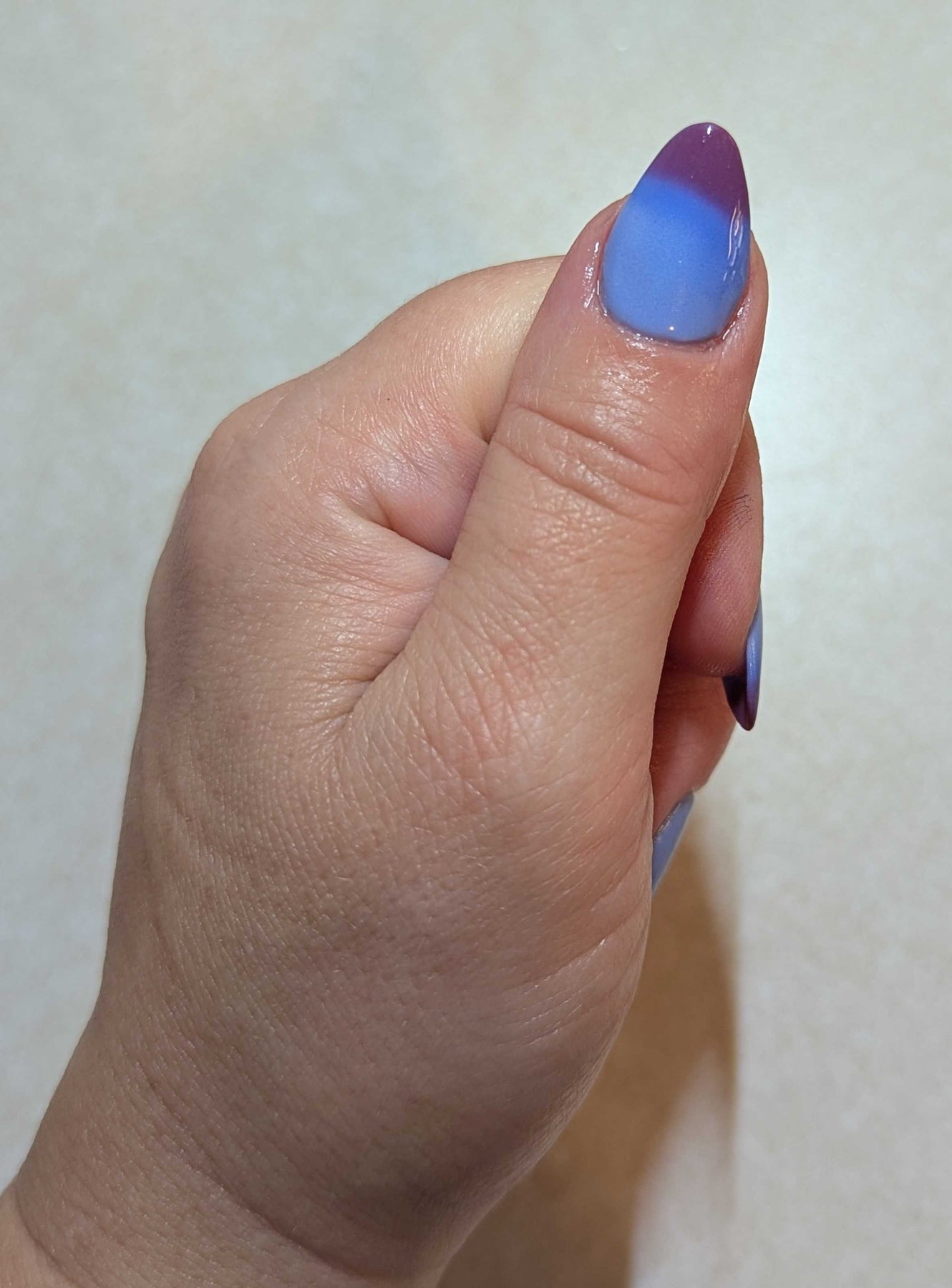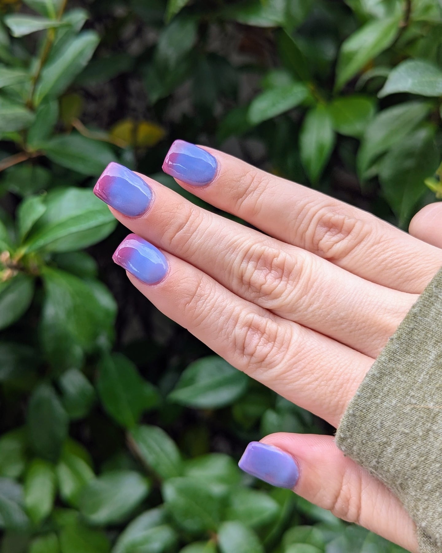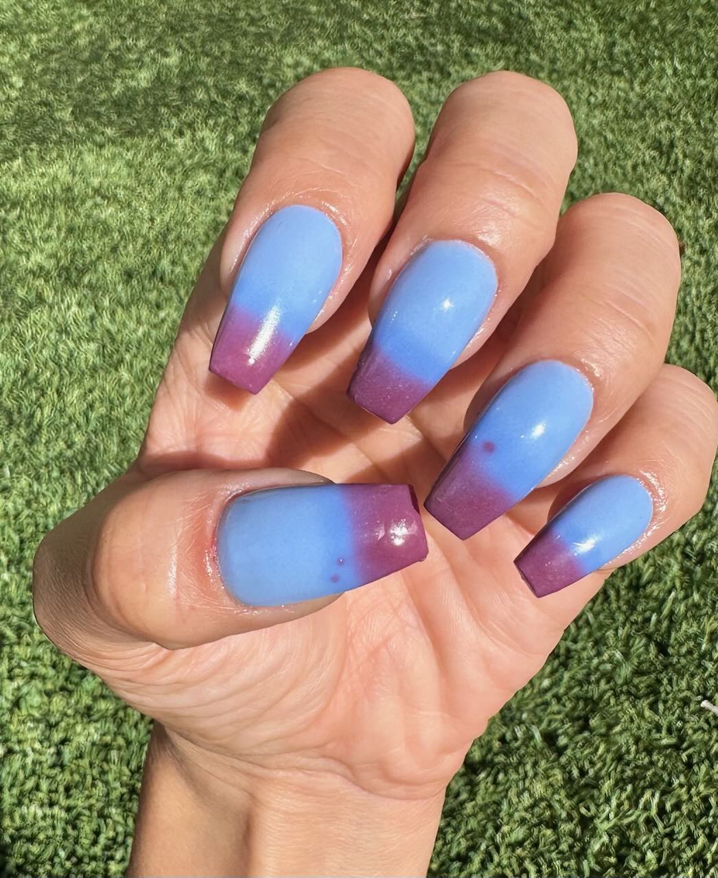 An icy, mesmerizing temperature changer that shifts from a deep midnight blue to a soft, cool light blue, finishing in a pinky maroon glow. It’s bold, moody, and totally addictive — the perfect shade for anyone who loves a little color-changing magic. ❄️
