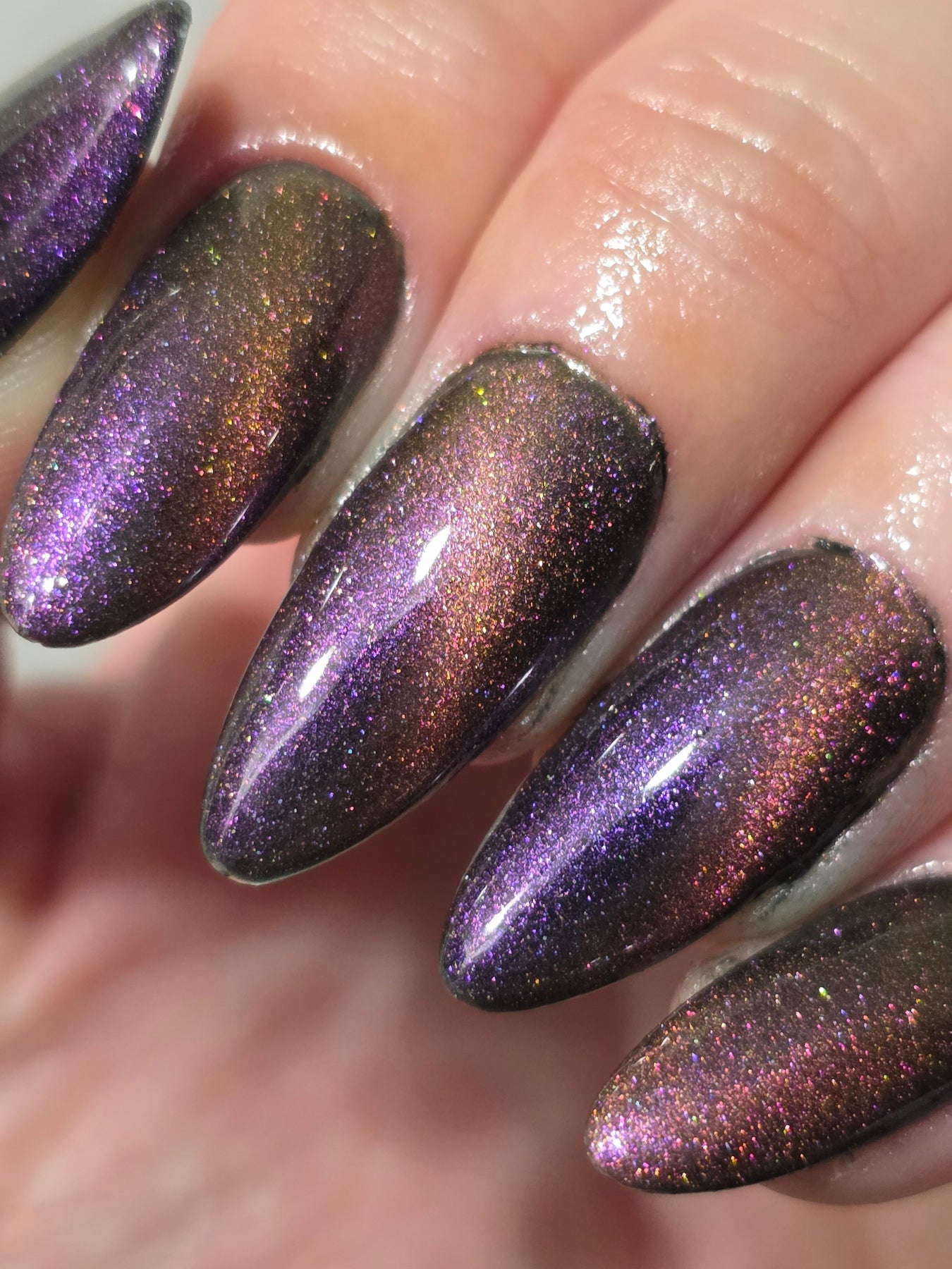 Turn up the heat with Pure Fire — a bold purple shimmer ignited by vibrant orange-pink glitter, creating a fierce, mesmerizing cat-eye look with every swipe. 🔥💜