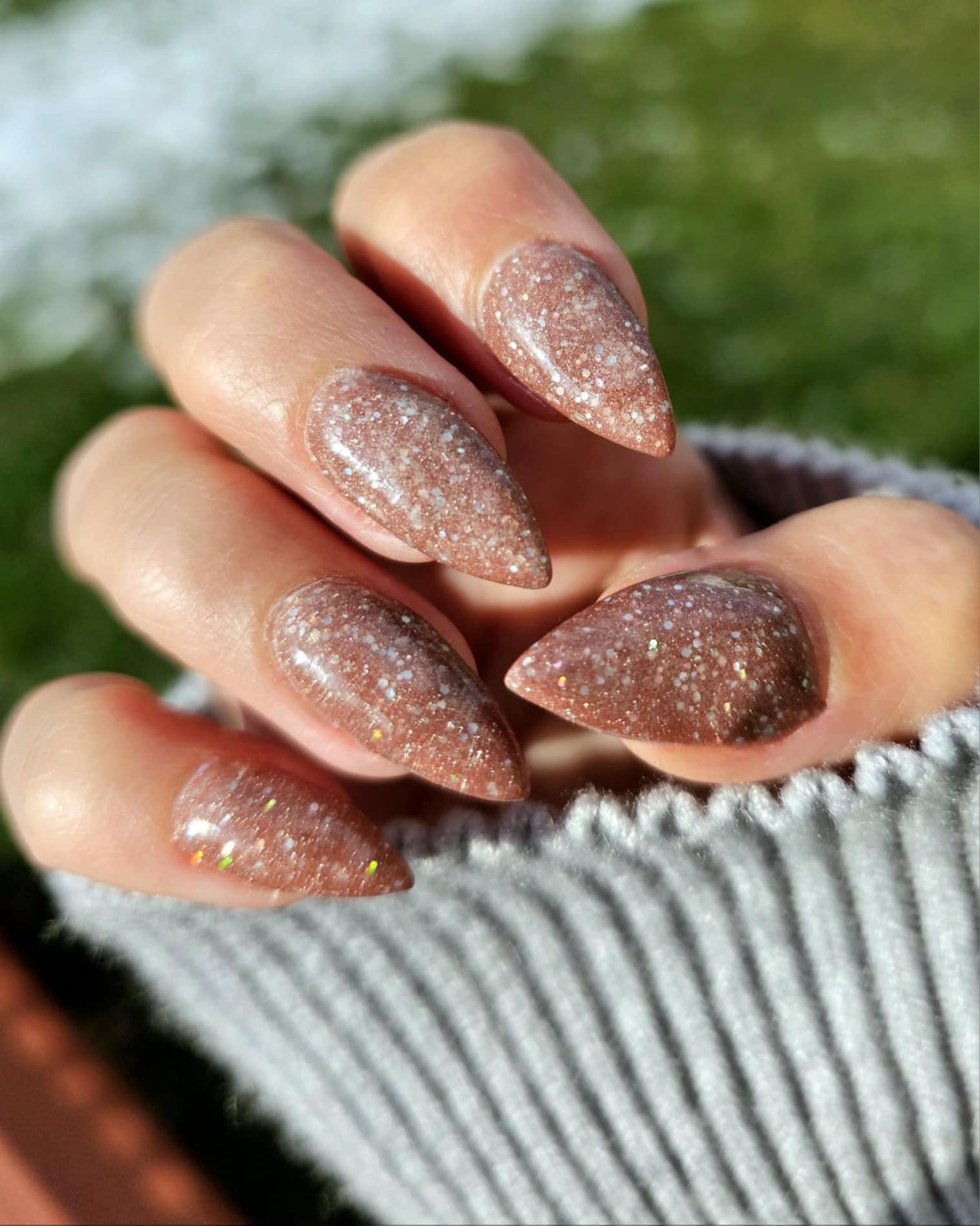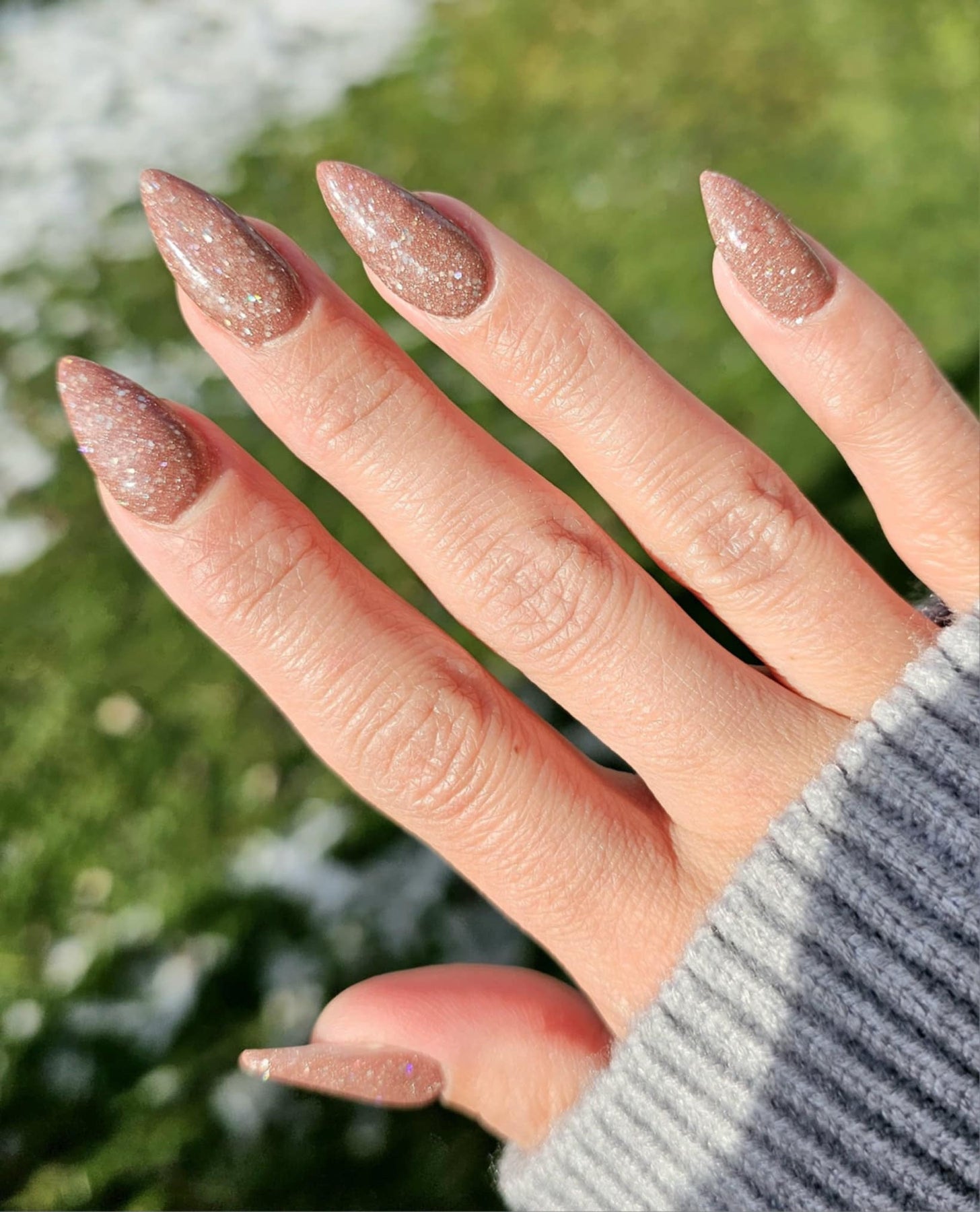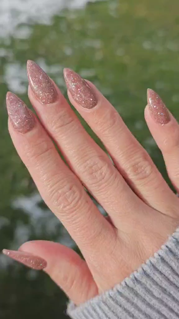 A stunning rose gold glitter that’s romantic and pink, timelessly elegant with a sparkly side. This shade adds a warm, glowing shimmer to your nails, perfect for brightening any day! 🌹