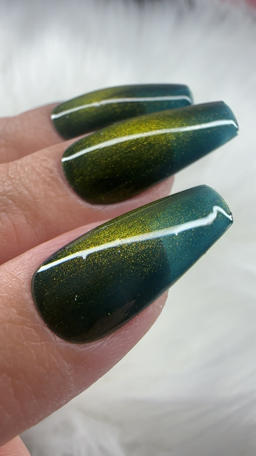 A true Christmas green with the perfect touch of shimmering emerald. Smooth, reflective, and magical — swipe your magnet and watch it come to life with a bold cat-eye beam. Festive, rich, and full of holiday sparkle — the ultimate cozy-winter green.