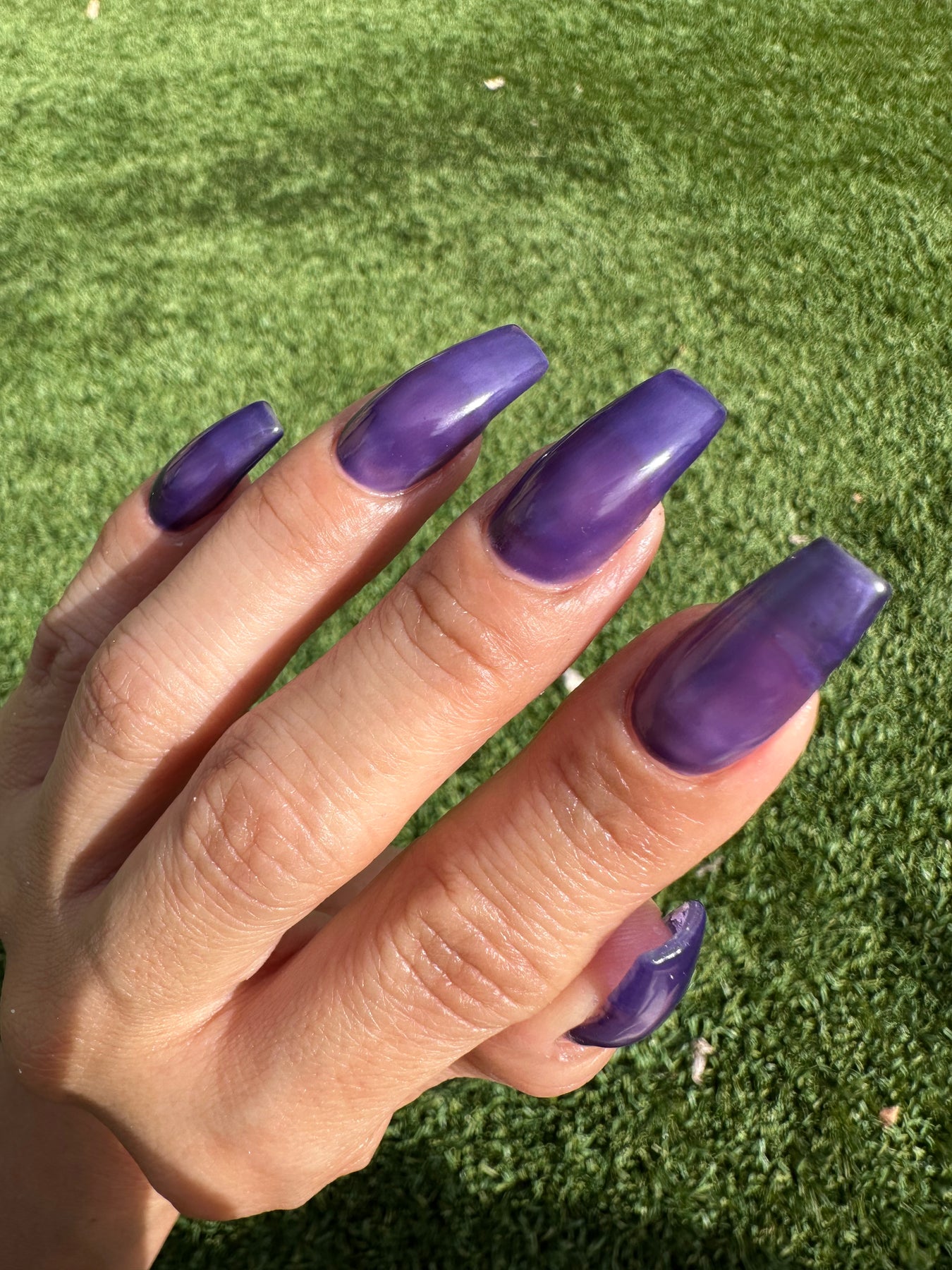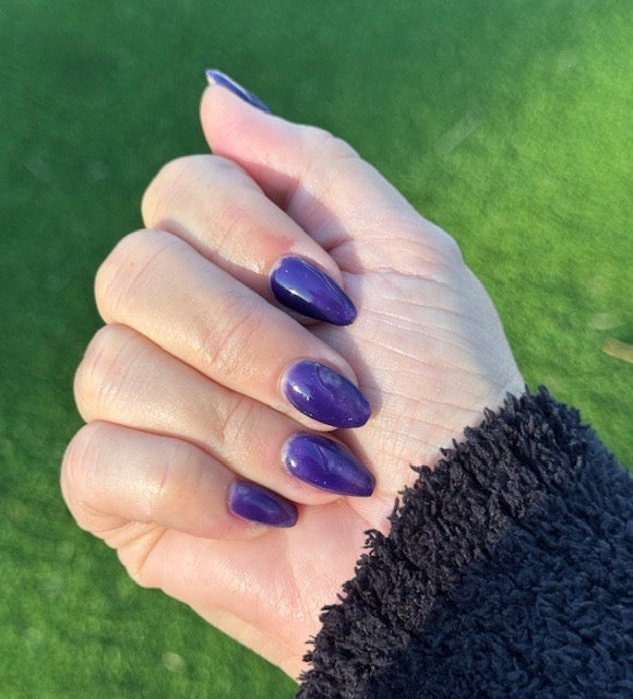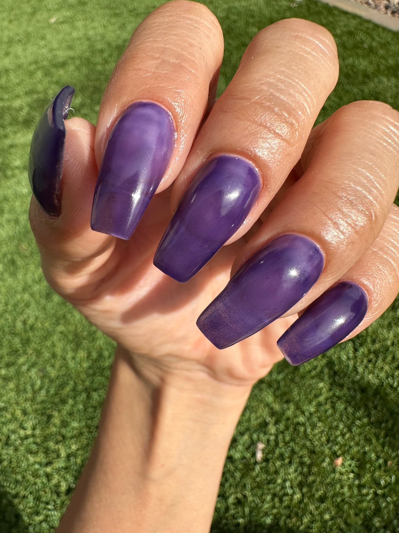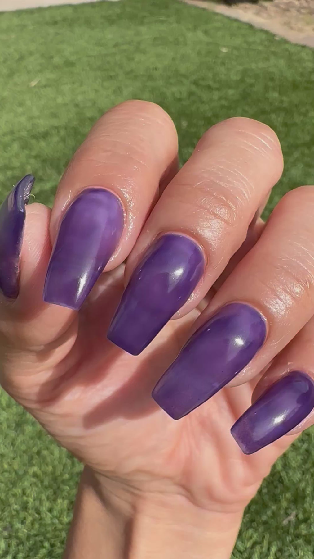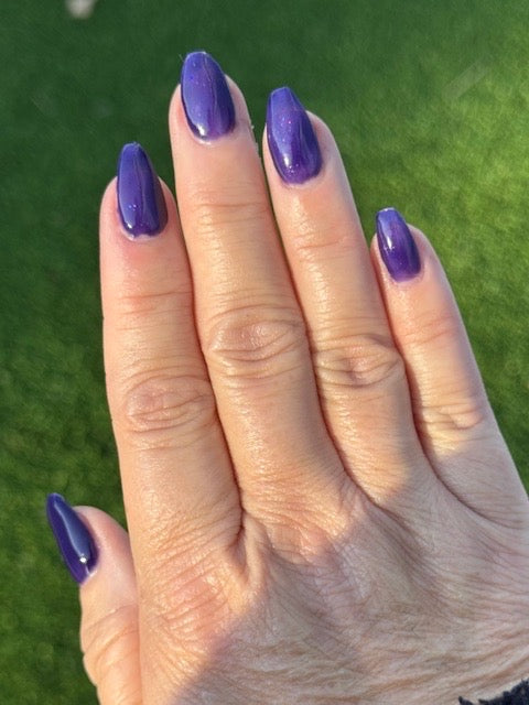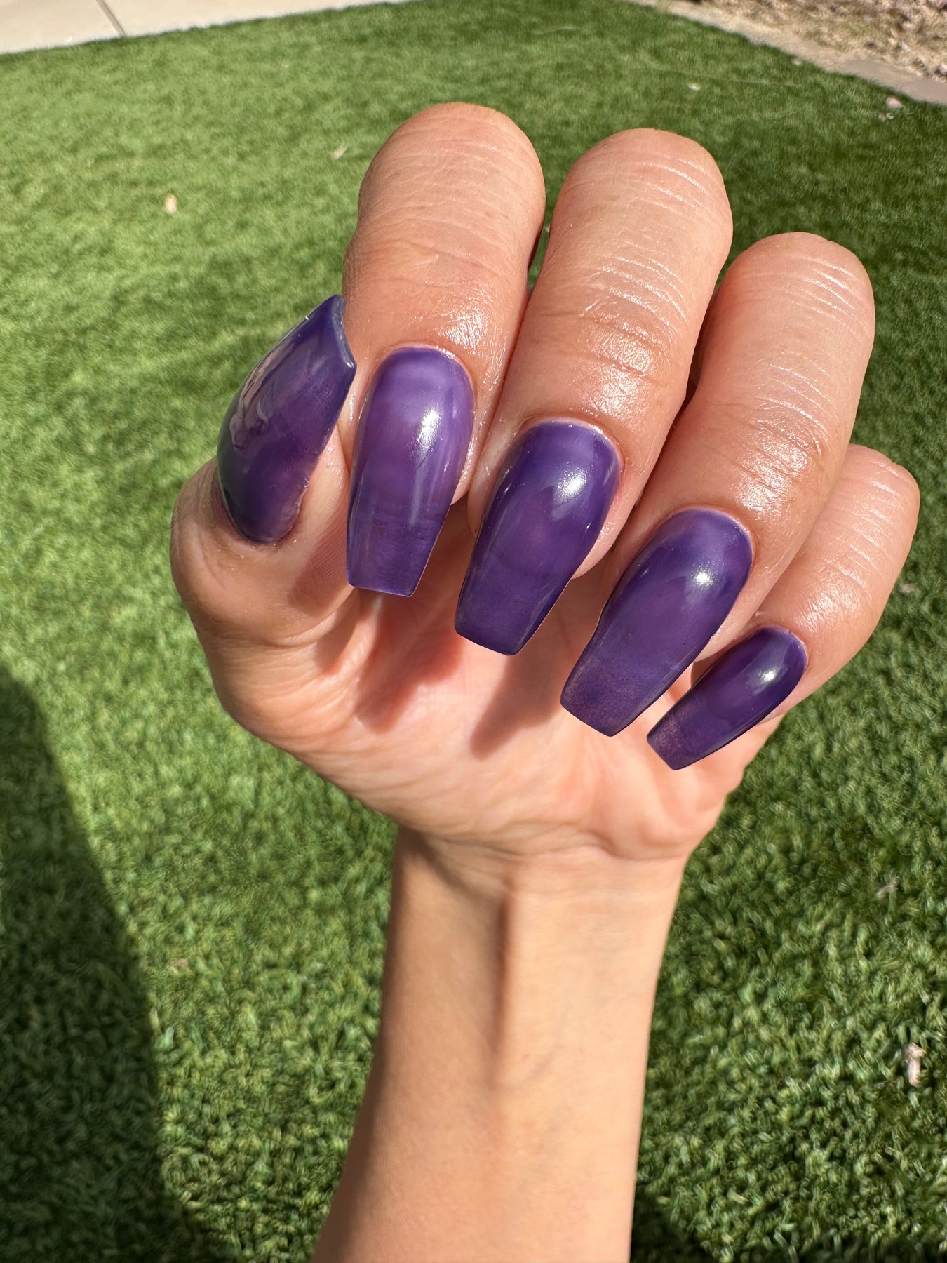 Think the magic of Christmas wrapped in a stained-glass window glow — an elegant jelly purple that shifts between moody and sweet with every move. Glossy, radiant, and totally enchanting.