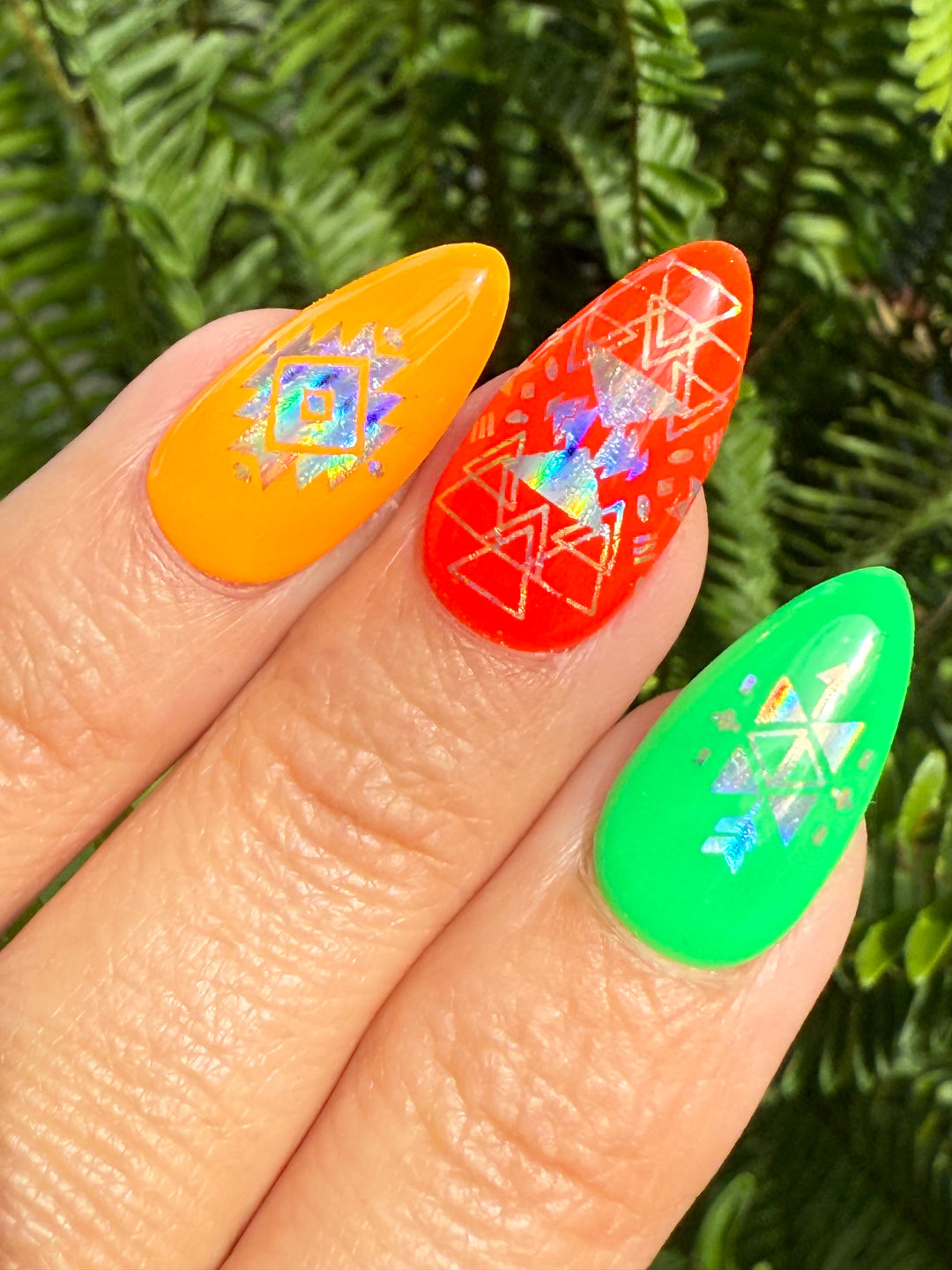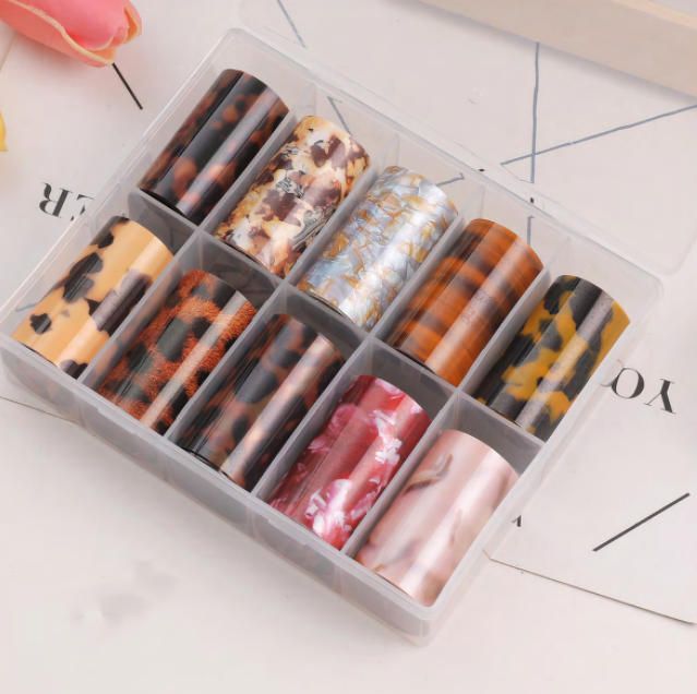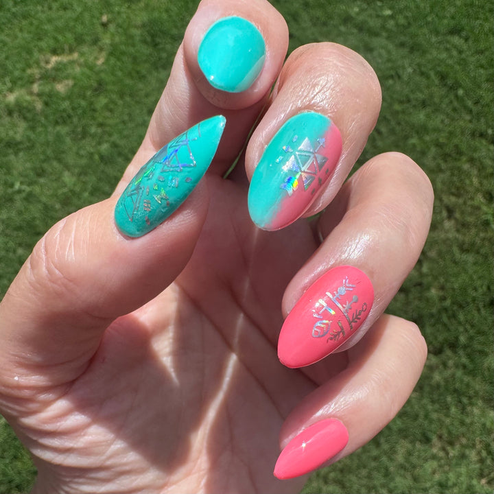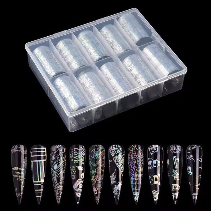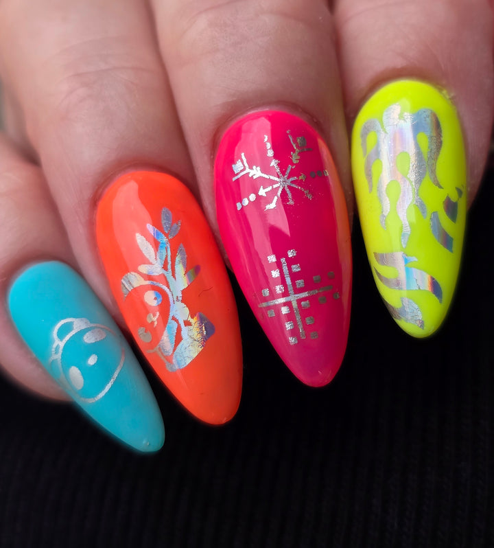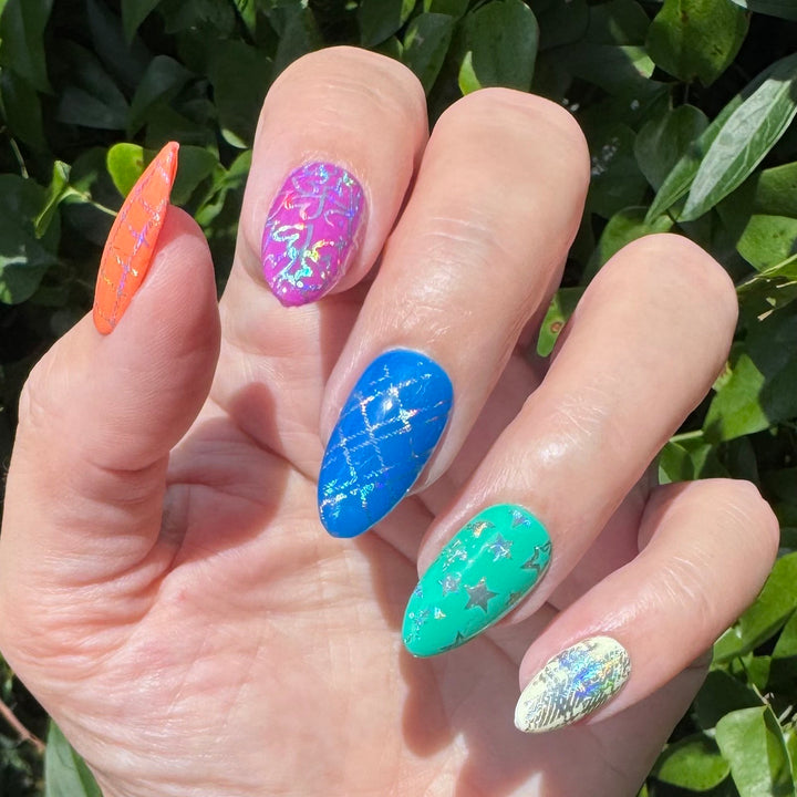 Step into a sparkling dreamland with Holo-Daydream—a box full of mesmerizing holographic transfer foils that shift and shine with every angle! This stunning set features a variety of dazzling designs, from delicate lace to chic geometric shapes and elegant patterns—all with that signature rainbow-reflective holographic finish.