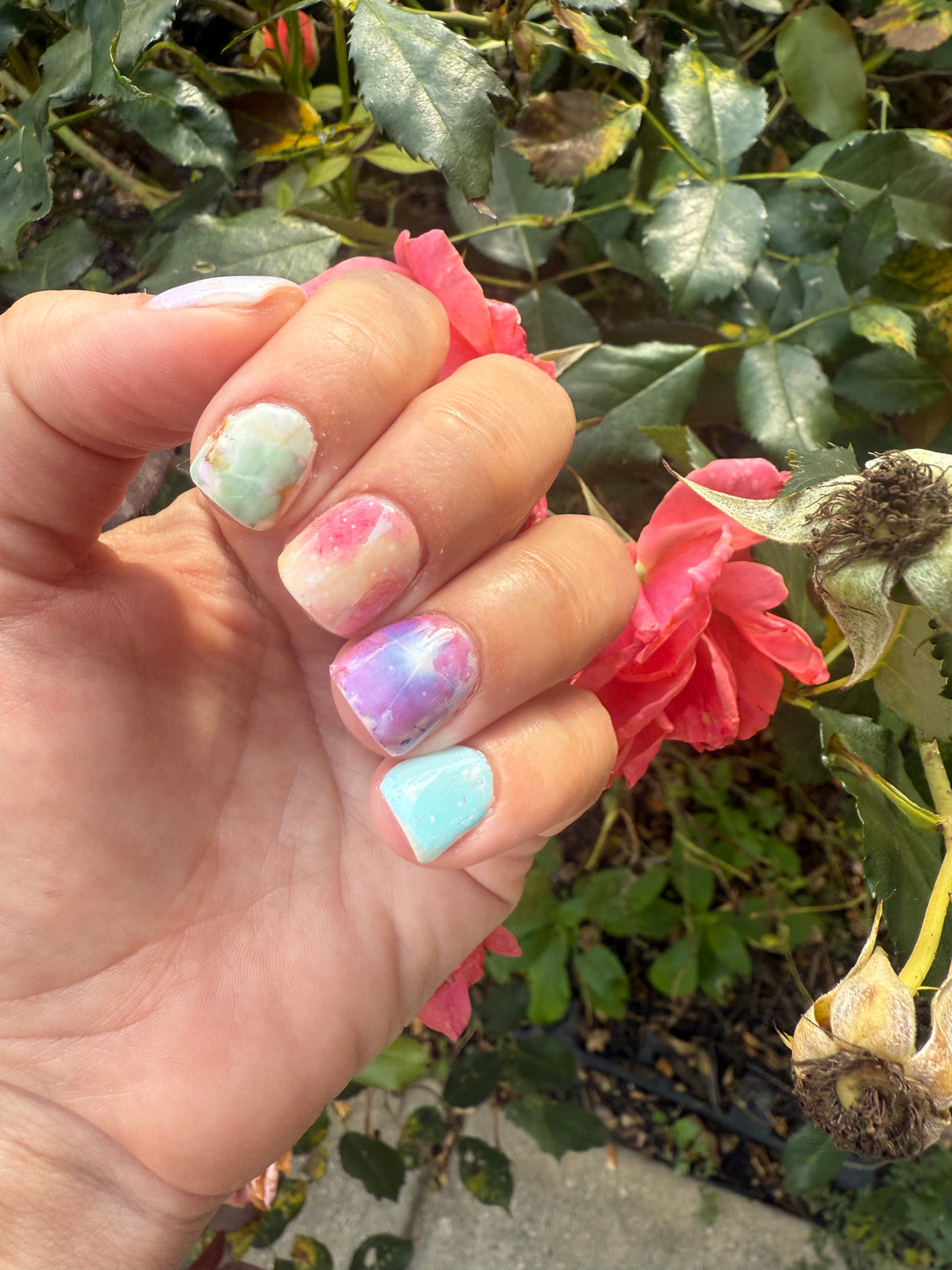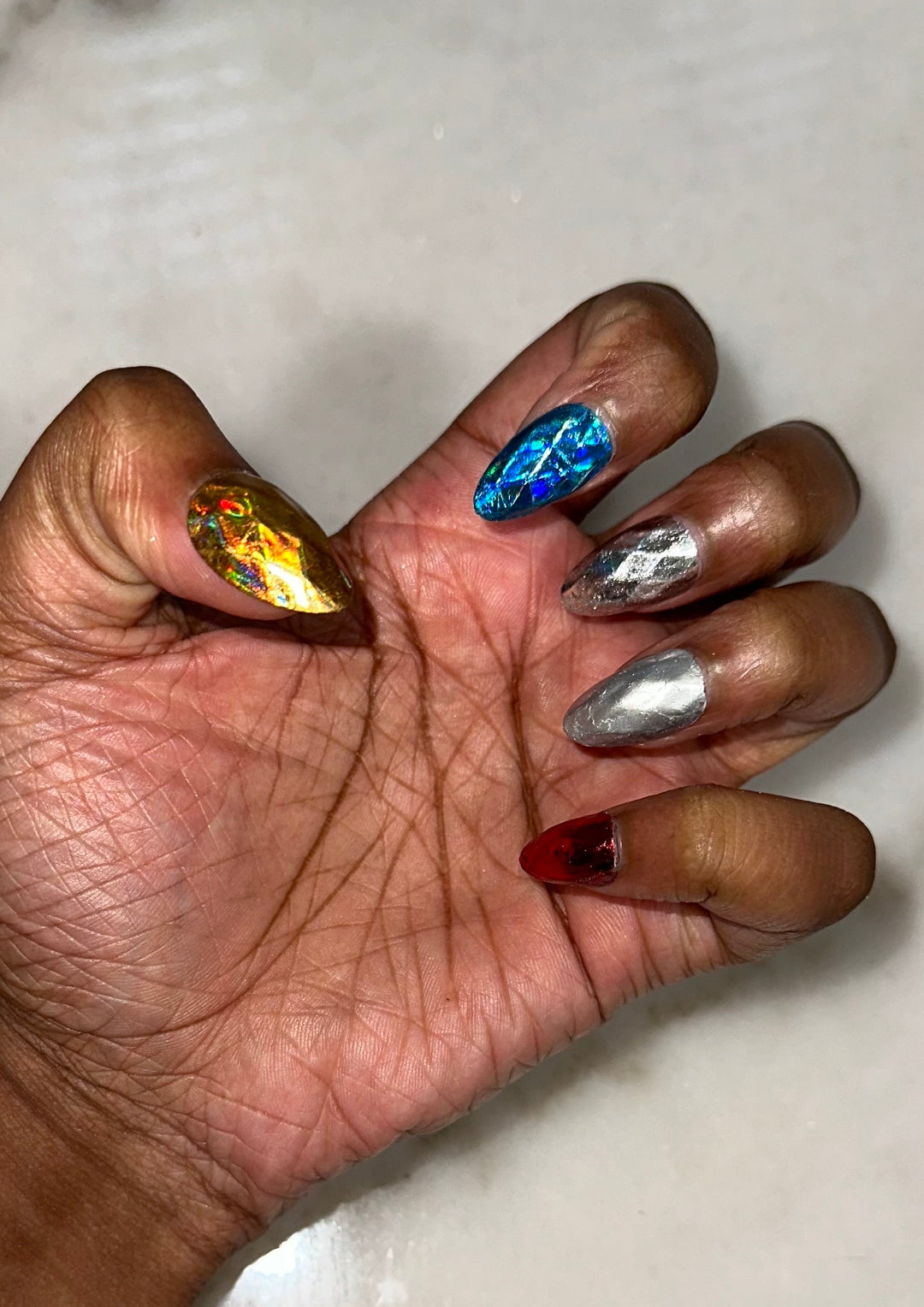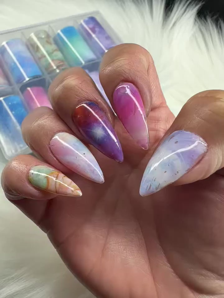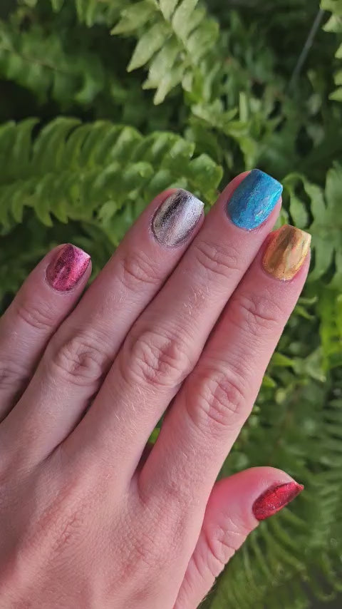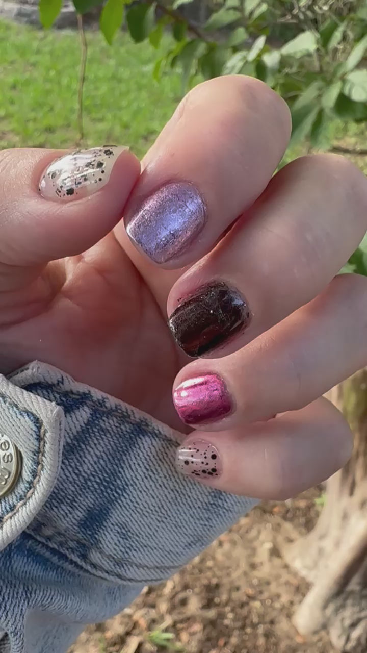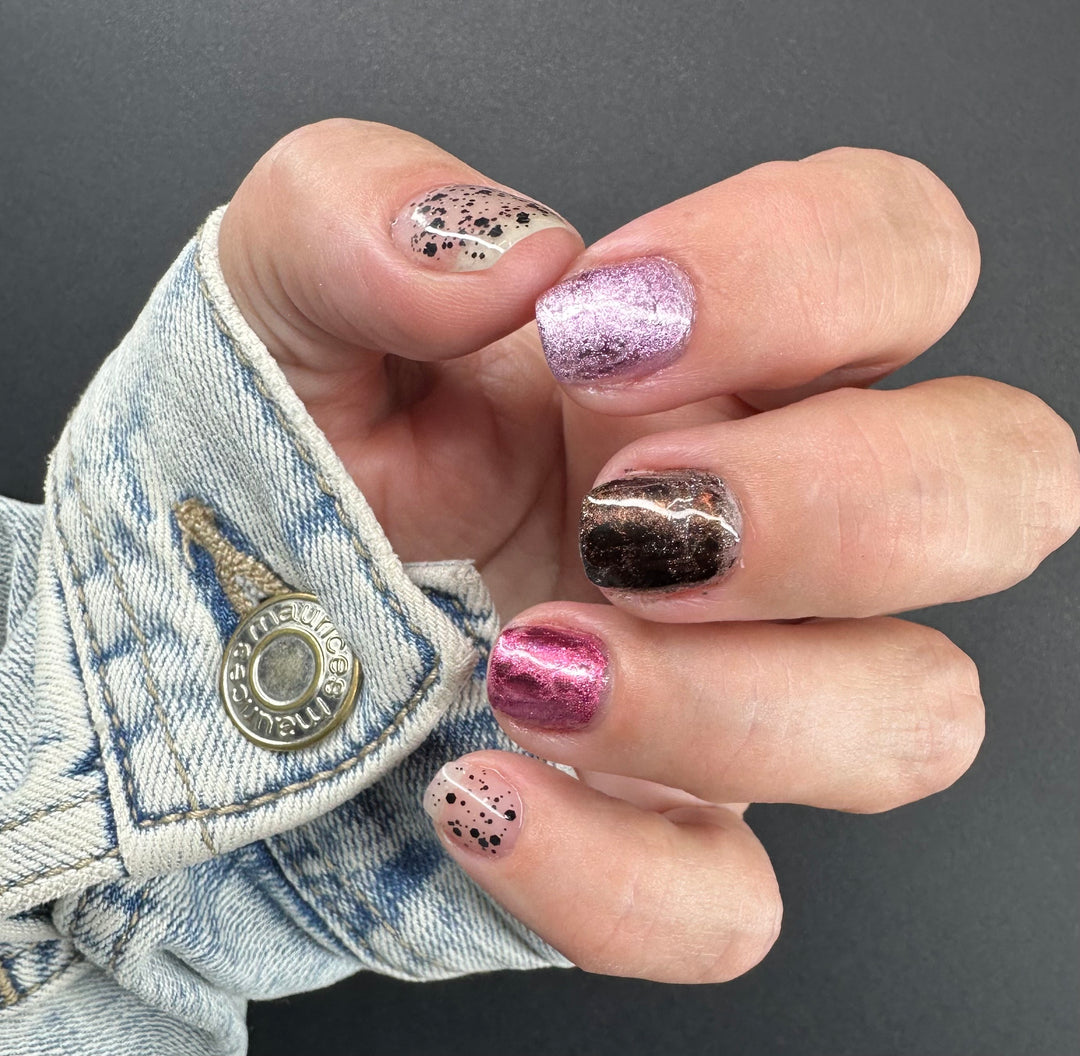 Ever wanted chrome nails without the mess? We’ve got you covered! From soft pinks to bold blues, this luxe multi-colored chrome delivers high-shine, head-turning glam with zero fuss.