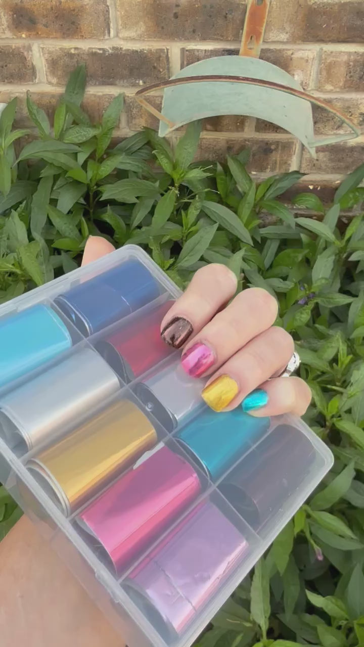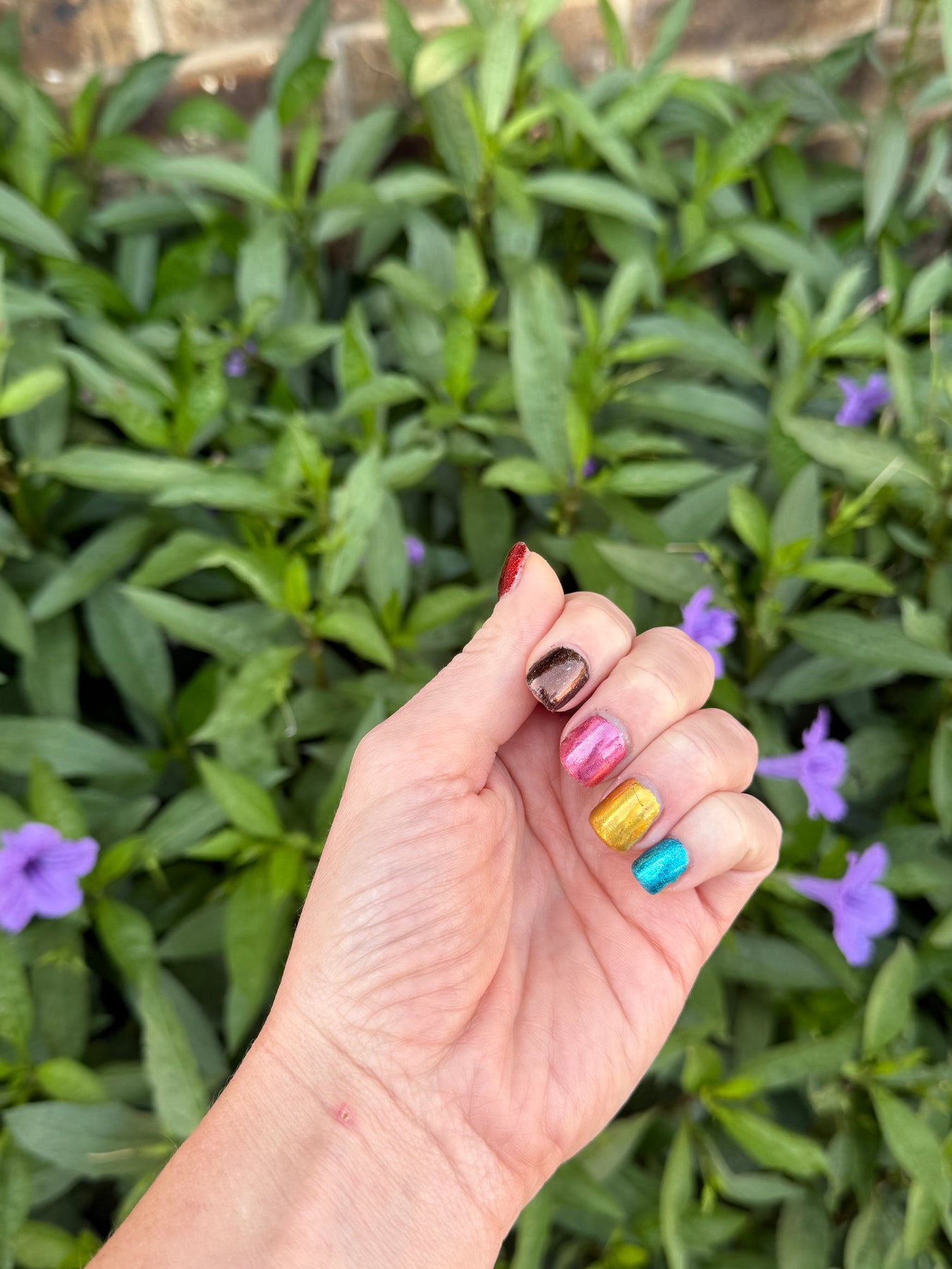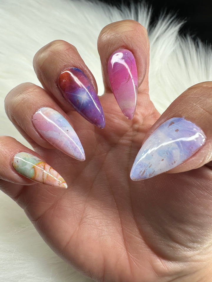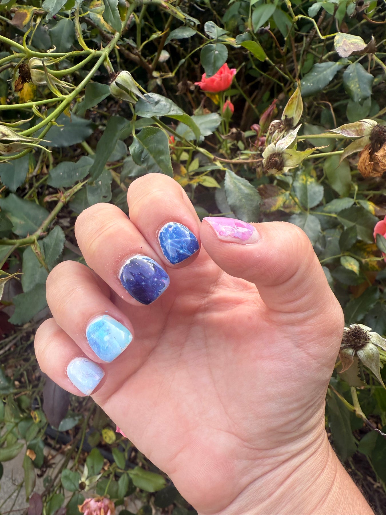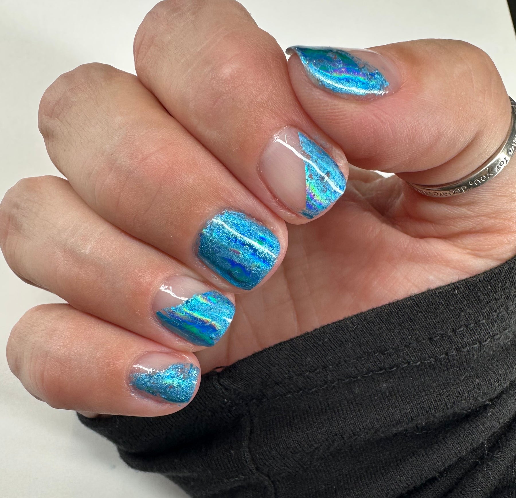 Ever wanted chrome nails without the mess? We’ve got you covered! From soft pinks to bold blues, this luxe multi-colored chrome delivers high-shine, head-turning glam with zero fuss.