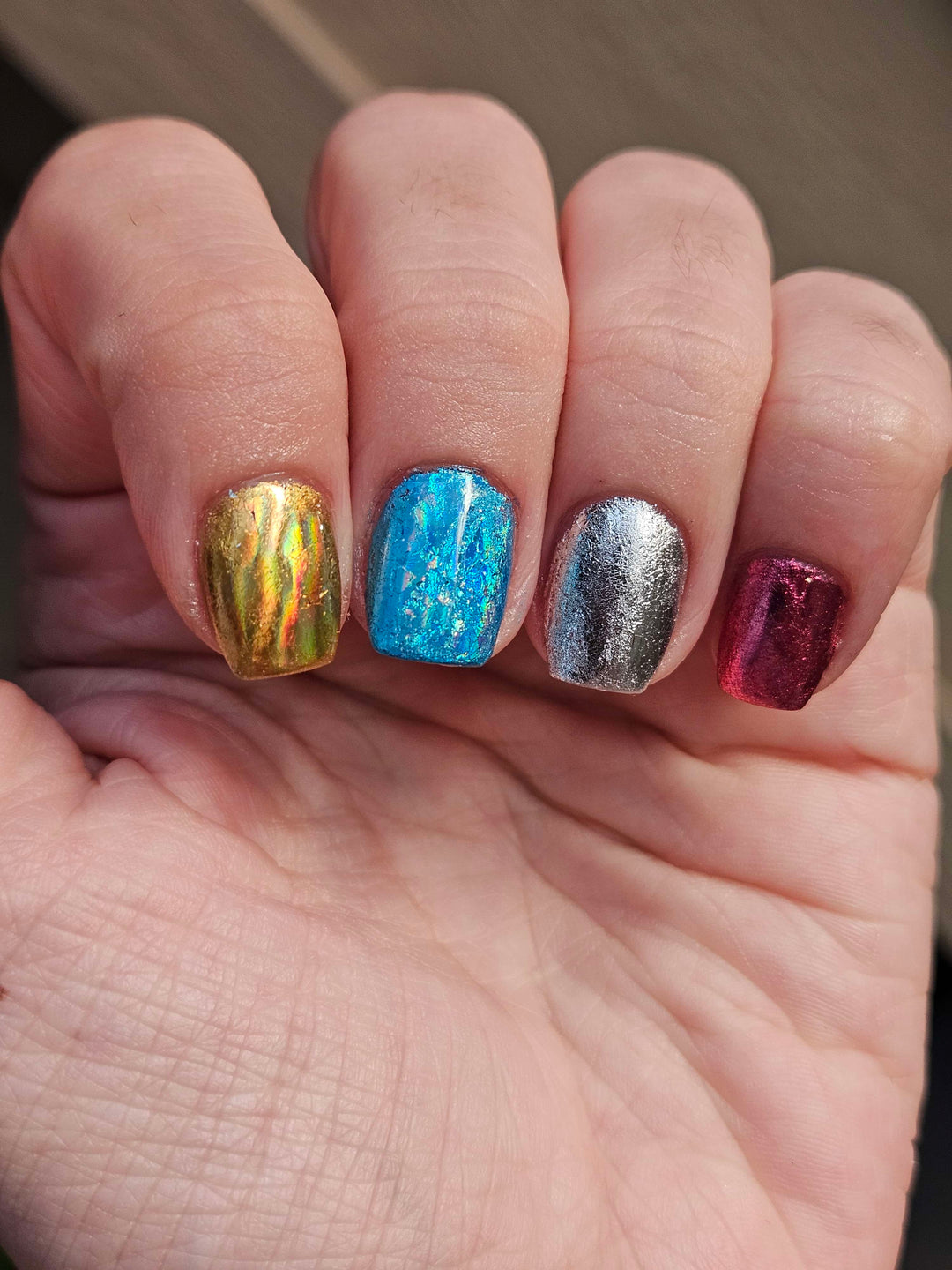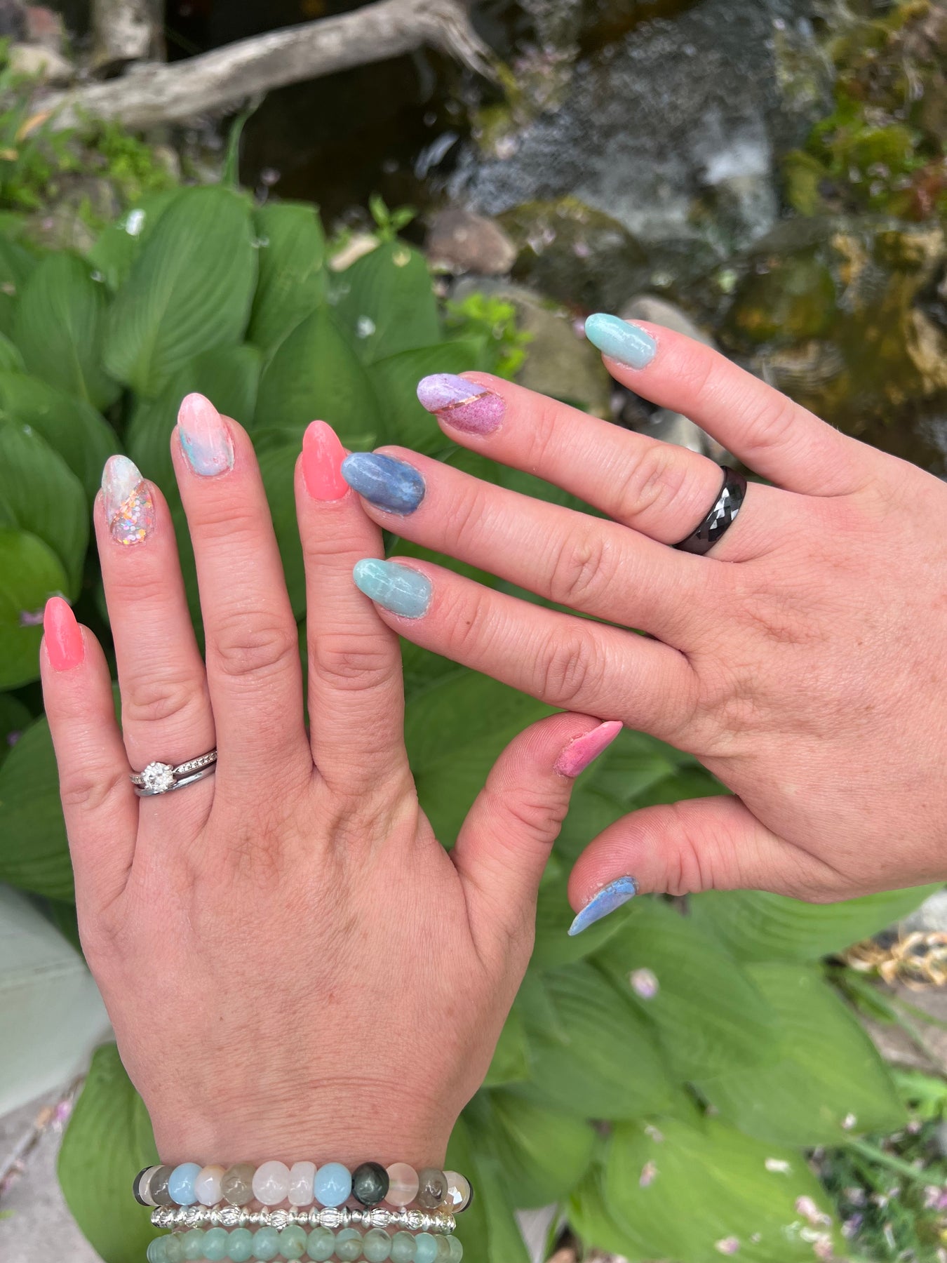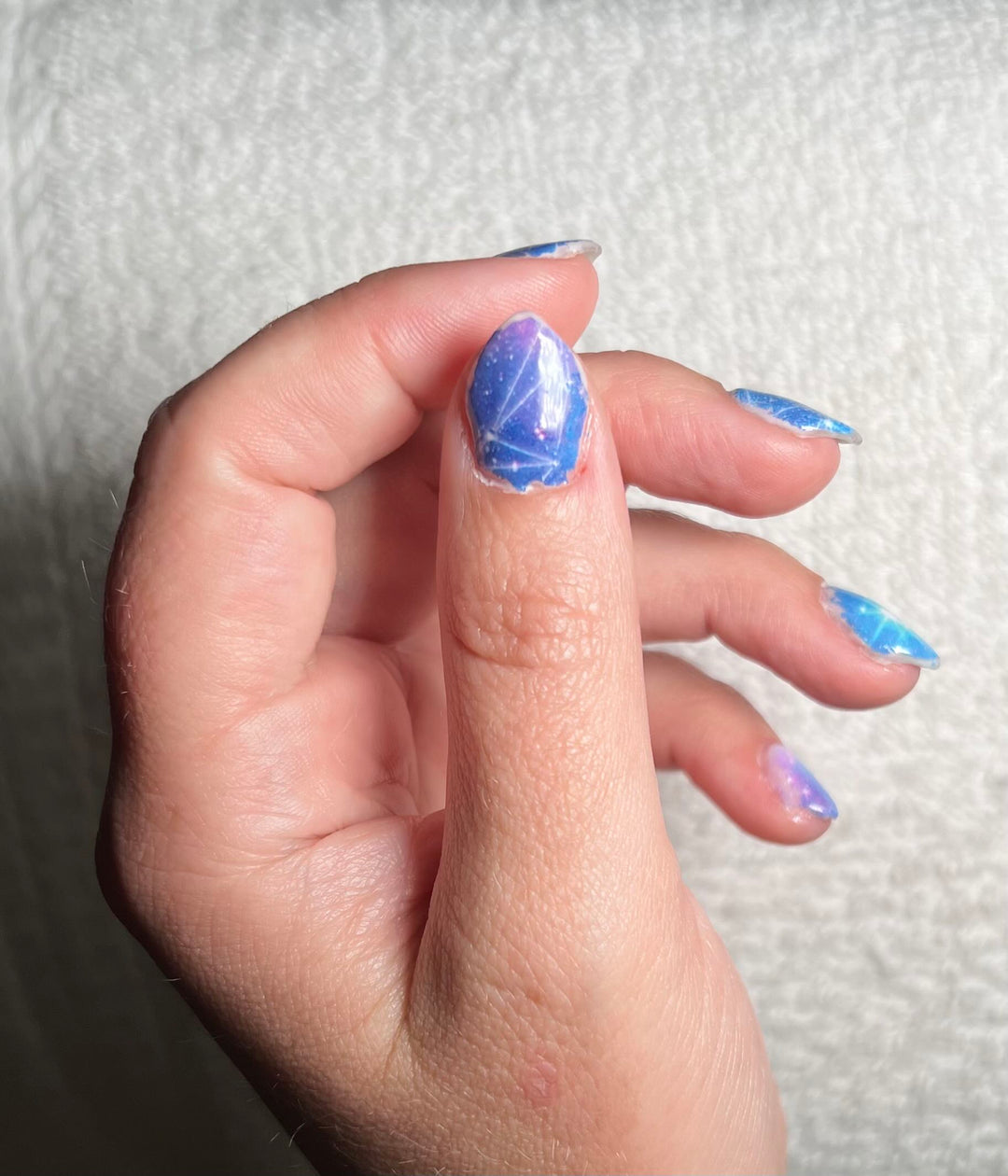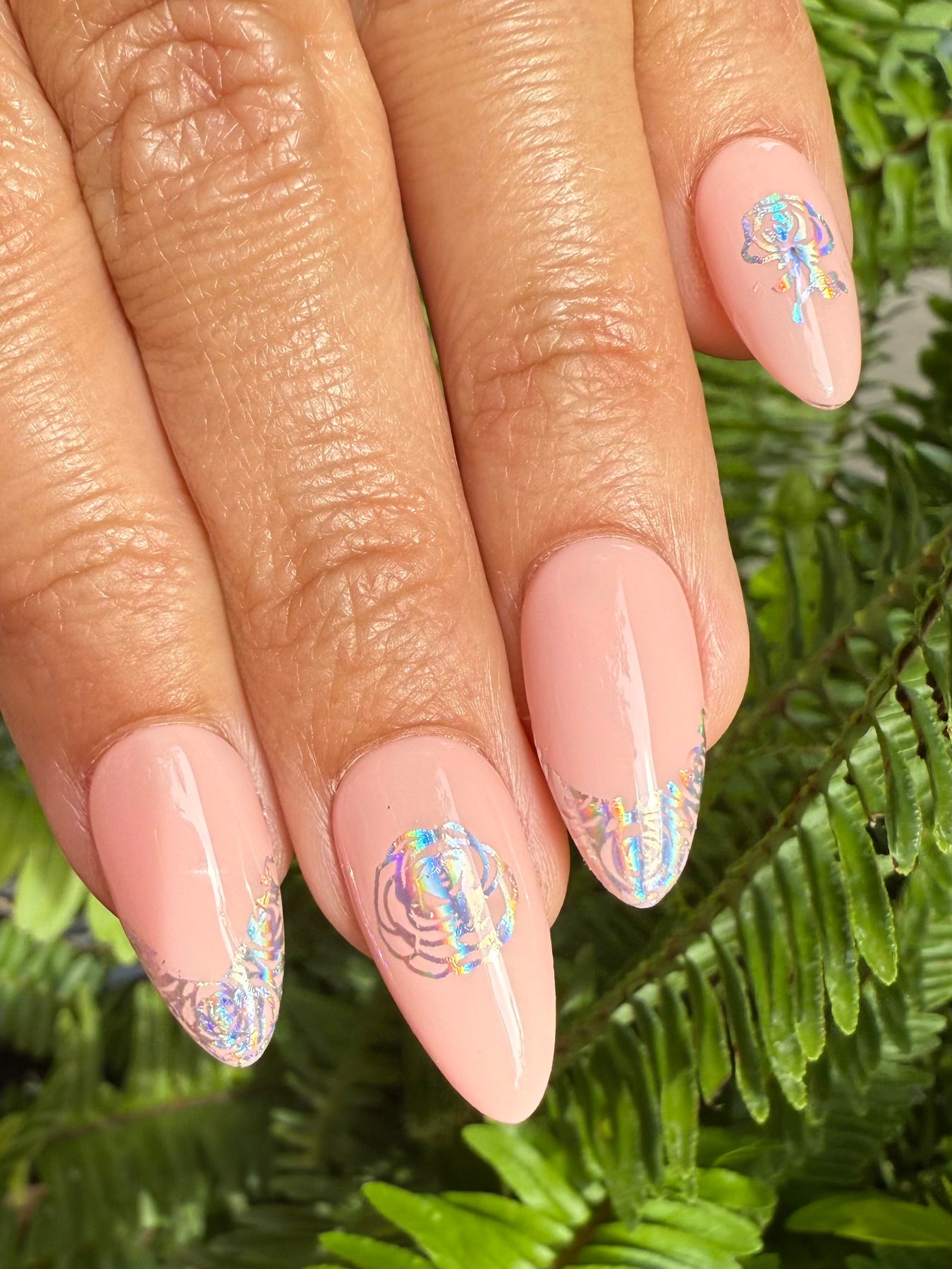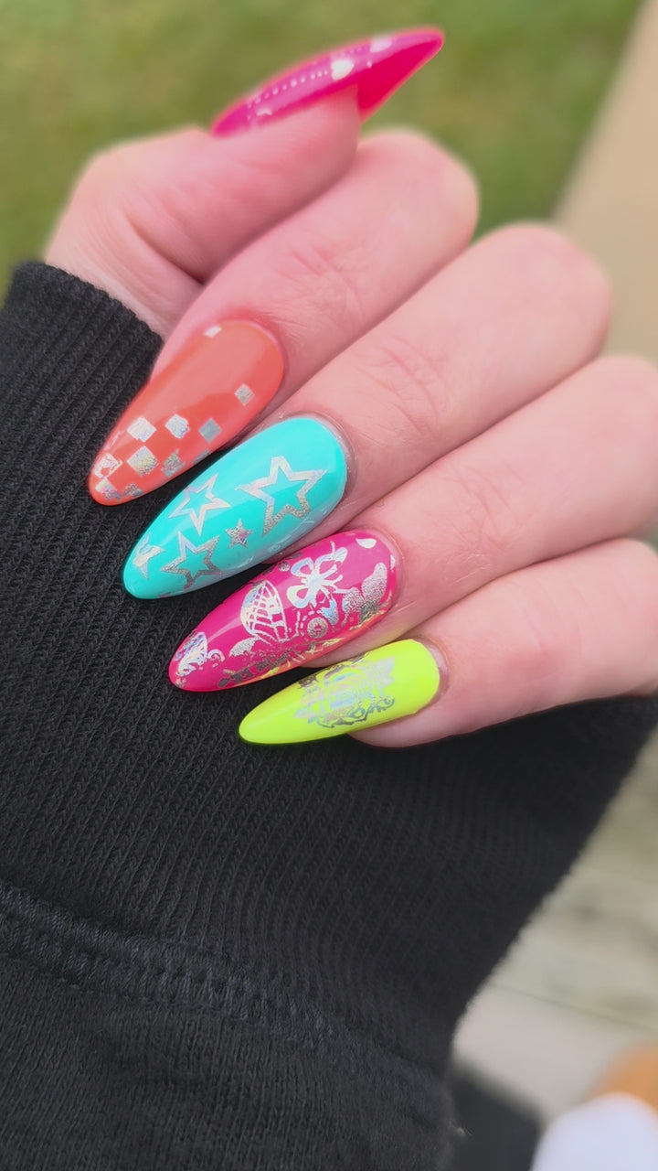 Ever wanted chrome nails without the mess? We’ve got you covered! From soft pinks to bold blues, this luxe multi-colored chrome delivers high-shine, head-turning glam with zero fuss.