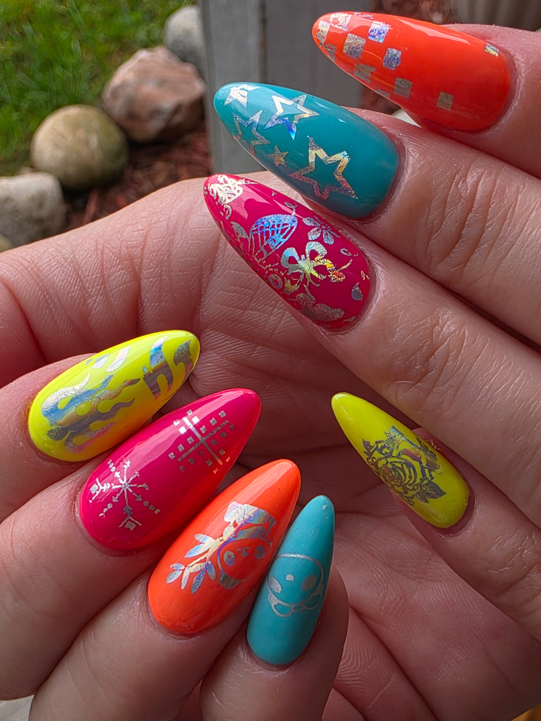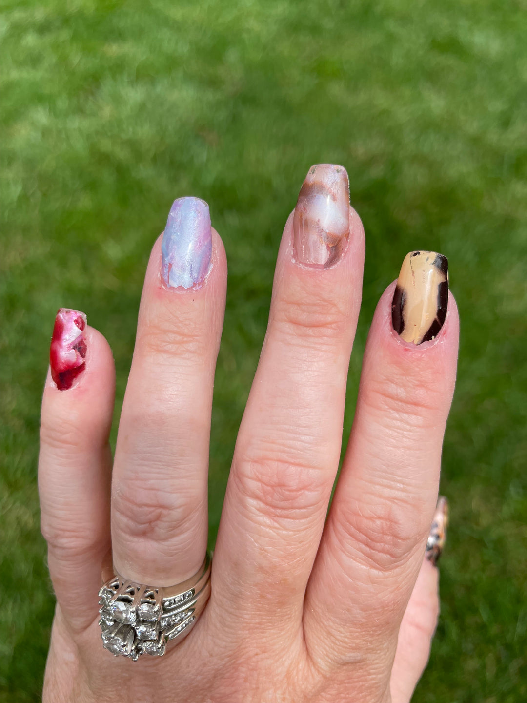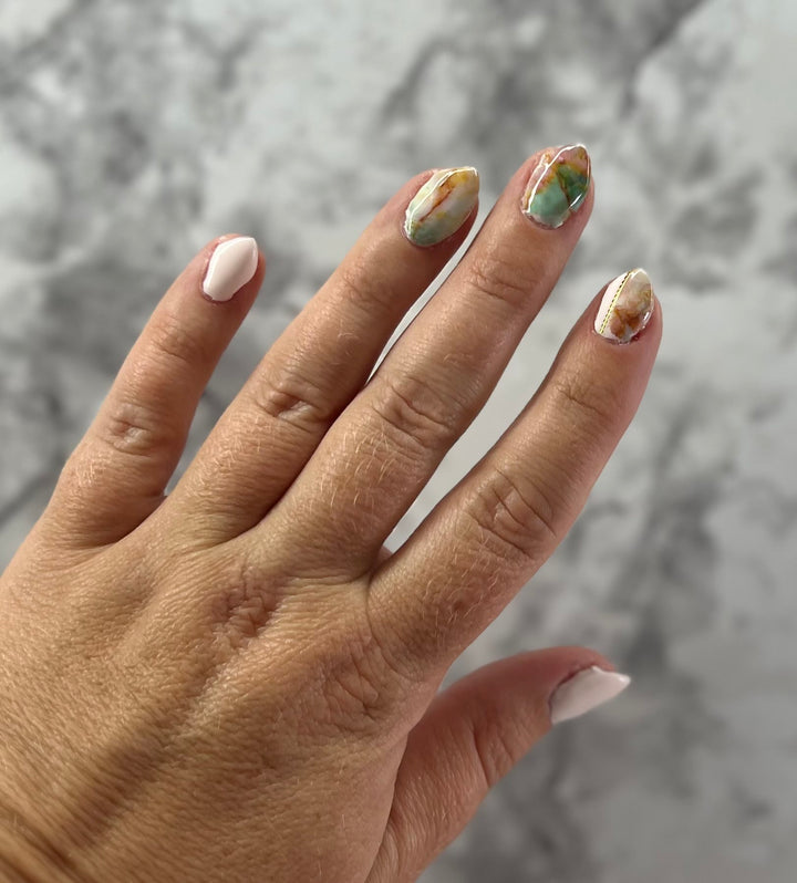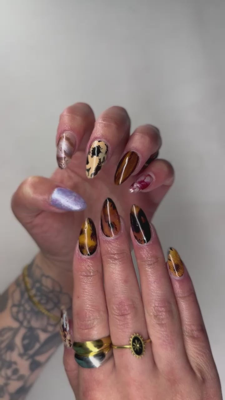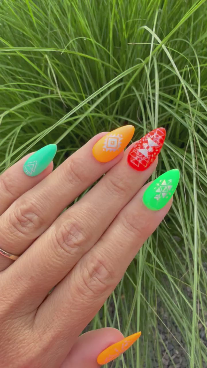Ever wanted chrome nails without the mess? We’ve got you covered! From soft pinks to bold blues, this luxe multi-colored chrome delivers high-shine, head-turning glam with zero fuss.