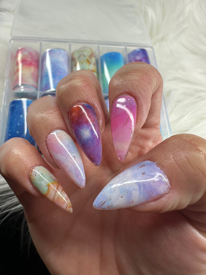 Get lost in the cosmos with Stardust Storm, a collection of full-coverage transfer foils featuring everything from twinkling constellations to swirling galaxies.